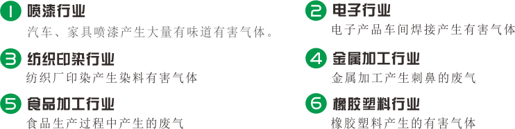 一、產生廢氣、油煙、廢水、粉塵等工藝設備或(huò)工況,選取不同處理設備