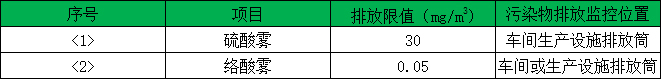 電鍍廢氣排(pái)放執行《電鍍汙染(rǎn)物排放標準》(GB21900-2008)中新(xīn)建企業大氣汙染物排放限值,具體值見下表: