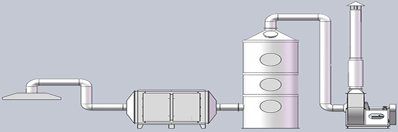 擬處理的鍋爐廢氣考慮運(yùn)營成本及安全性,本方案工藝路線擬(nǐ)采用(yòng)以“通風係統(tǒng)(風機、收集罩、管道)+核心淨化係統(雙堿脫(tuō)硫塔+濕(shī)式靜電除塵器)”為核心工藝來處(chù)理(lǐ)該廢氣。